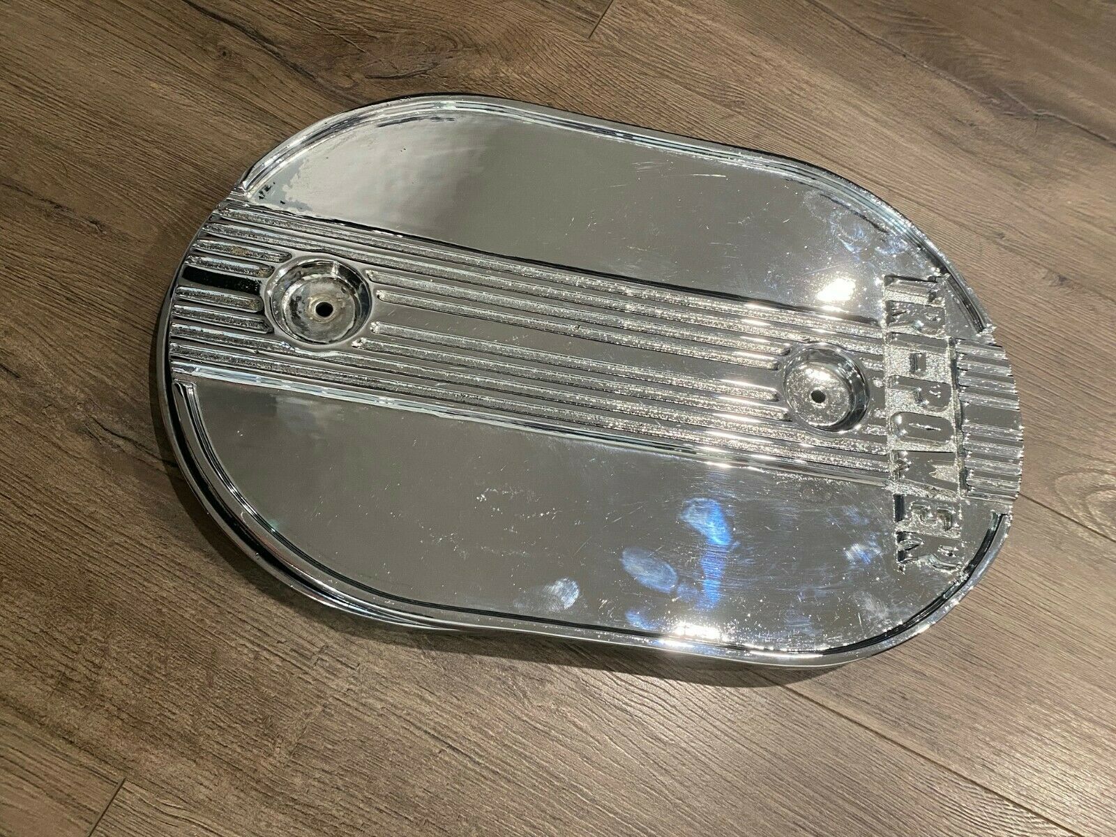 The second real Ford top plate for the original Thunderbird FE Carburetion has the original Ford Thunderbird badge cut into the grooves of the top plate. The groves go the complete distance from front to rear on original top plates. They like the other original 6V top plates use the 10 inch dimension between the two mounting holes in the top plate which match the front and rear holley carburetor air cleaner threaded stud location. Again Blue Thunder through Classic Blue Performance offers exactly correct reproduction air cleaners including the correct 10 inch dimension.